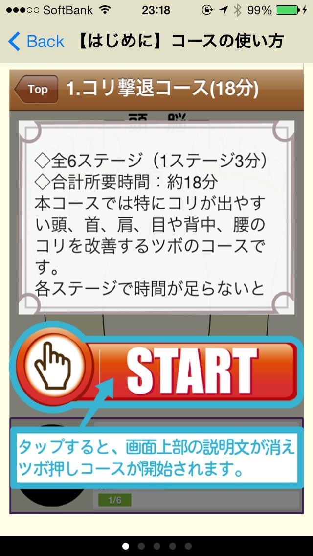このアプリでは合計で46の効果を感じることが出来るツボを教えてくれるので、調子が良くない部分のツボを押すことで状態を改善することが可能です。 中には、「乗り物酔い」、「不眠症」、「無気力」に効果があるものも紹介されているので、知っておくことで、いざ症状が出てしまったという時にツボを押すことによって助けとなったり、周りで困っている場合はどこを押せばいいのかを知らせることによってつらい症状から救うことが出来るようになります。 さらには、コースが用意されており、例えば「ストレスケアコース(15分)」などを選ぶことによって、長時間いろいろな部分を押すことで劇的な効果が期待でき、マッサージ店にわざわざ行く必要がなくなる可能性もあります。