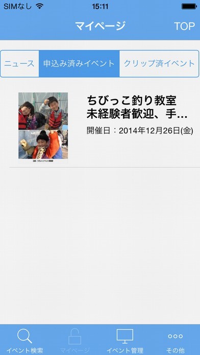 「つりいく ~釣りが、まっている!~」は釣りに関係するイベントの情報をスマートフォンからチェックして、参加エントリーをすることができるアプリになります。開催地や開催日などでイベントを検索することができるだけでなく、エントリーしたイベントの情報更新や連絡はプッシュ通知でお知らせしてもらうことができます。