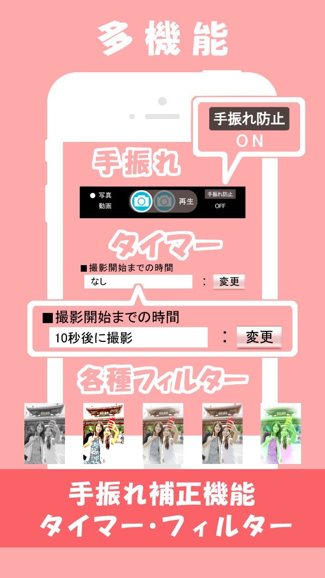 友達や彼氏、彼女と一緒に写真が撮りたくなったけど自撮り棒が無い!自撮り棒はちょっと恥ずかしい・・そんな時におススメなのが「片手で簡単!自撮りカメラ」 スマホのカメラでの自撮りはシャッターが押しにくく至難の業。 「片手で簡単!自撮りカメラ」なら撮影前、シャッターボタンに親指を当てておき、撮りたいタイミングで左にスライドするだけ。 片手で簡単に撮影できて写真の保存・加工も簡単。 シンプルながらも必要な機能がしっかり揃って便利に使えるカメラアプリです。