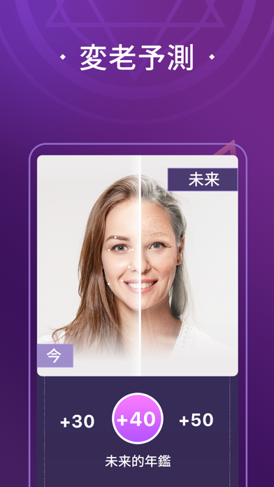 あなたはあなたが将来どのように見えるか知りたいですか?現在の写真をアップロードすると、10年、20年、30年、さらには50年で自分自身を見ることができます。実際、カラスの足と白髪は、年をとることも非常に興味深いことです。