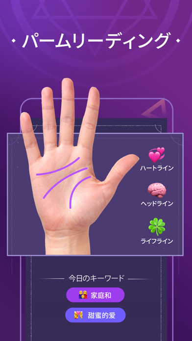 写真を撮って手のひらの写真をアップロードしてください。神秘的な手のひらと個人情報に基づいて、私たちは愛、富、経歴、人生などの無限の人生の神秘を明らかにします。
