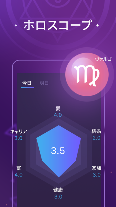 App Storeより引用Palm Seer - Aging, Horoscope、ここであなたは将来どのように年をとり、神秘的なパームリーディングを得るかを予測することができ、同時に、あなたはあなたのホロスコープ情報について学びそして人生を楽しむことができます。