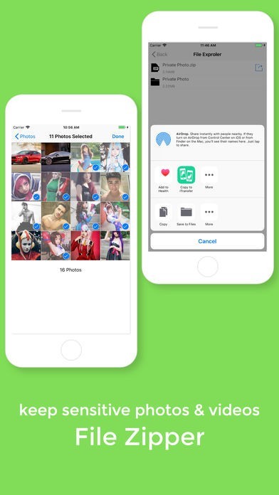 • File Zipper - Photo & Video Vault: Select sensitive photos & videos you want to hide, compress them to optimize free space.