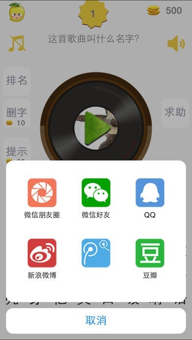 - 必须准确地猜出歌曲名字后才能进入下一关哦!