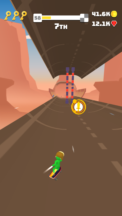 スティックマンのようなシンプルなキャラ10人がスケーボー、ボール、さらにはタイヤに乗ってレースを繰り広げます。正統派レースゲームには無い規格外のデッドヒートを楽しめます。