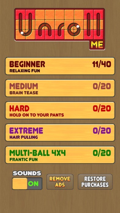 最初に表示される初期スクリーンでパズルゲームの難易度を変更することが可能となっています。これにより自分のレベルにあったパズルを選ぶことが可能となりゲームクリアが容易になります。