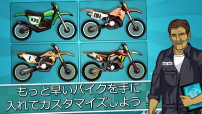 11種類のバイクを使って上りつめよう。バイクのスピードとハンドリングはそれぞれ異なるぞ。一番速いバイクを手に入れて友達に差をつけよう!