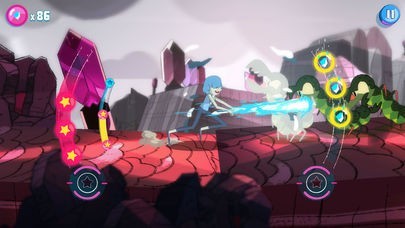 カートゥーンネットワークの人気アニメであるスティーブン・ユニバースをテーマにしたゲームです。音楽に合わせて攻撃しながら走っていくリズムランゲームになっています。 攻撃はタップ、ホールド、スワイプの3種類の操作でド派手な攻撃を繰り出すことができます。 オリジナルの宝石を作ることができ、キャラクターの見た目や武器も自分好みにカスタマイズ可能です。 アニメでおなじみの歌のリミックスバージョンなど様々な音楽を楽しむことができます。