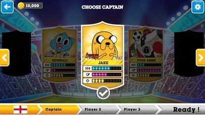 アドベンチャー・タイム、ベン10、ガムボール、パワーパフ ガールズ、レギュラーSHOW〜コリない2人〜、ティーン・タイタンズGO!、ぼくらベアベアーズの中から選手を選ぼう。それぞれのチームには1人のキャプテンと2人のチームメンバーの計3人の選手がいるぞ。それぞれの選手には、スピード、シュート力、シュート精度などの独自のパワーや弱点があるよ。理想のチーム作りに挑戦しよう!