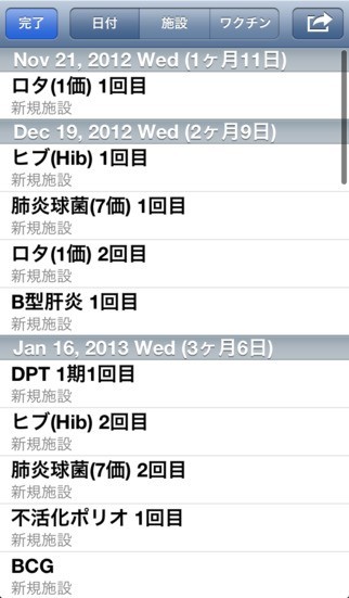 ・Hibワクチンや肺炎球菌ワクチンなど、接種開始時期によって接種回数が変化するものに対応しています。