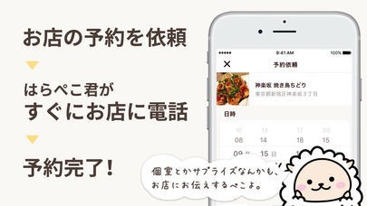 はらぺこくんというキャラにチャットで予約のお願いをすると、実際に予約を入れてくれます。キャラクターも可愛いのでとても癒されます