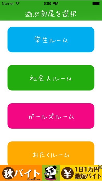 学生等のカテゴリごとに部屋がわかれている