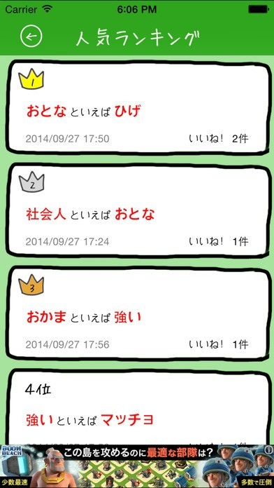 面白いと思った連想にはいいねで評価できる