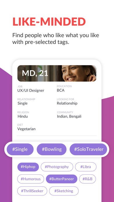 We have matched a million people, as a leading app in India’s dating scene, we realize how important it is to create the right environment. So singles feel secure and comfortable to find, chat and meet people they actually like.