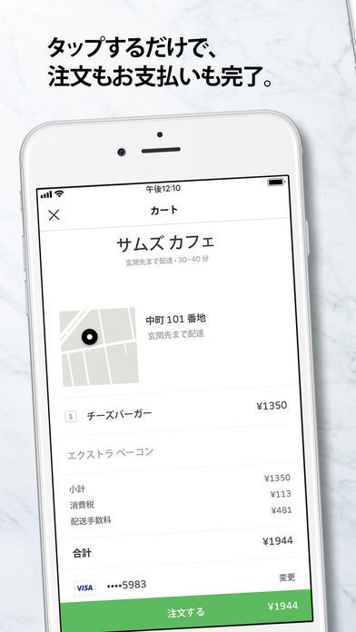 アプリを追加した際にアカウント登録を済ませておくと、カードでの支払いが可能になります。デリバリーされた際に小銭を用意しておく必要がないため、お腹が減っているときに便利です。