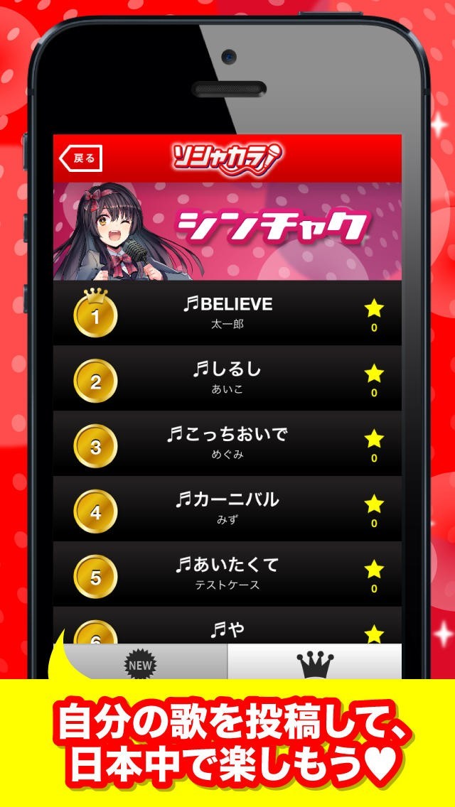 自分の歌をジャケット写真を決めて投稿可能