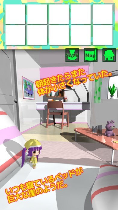 ある朝起きたら体が小さくなっていたプレイヤーが元の体に戻るため室内を探索する新感覚脱出ゲーム!