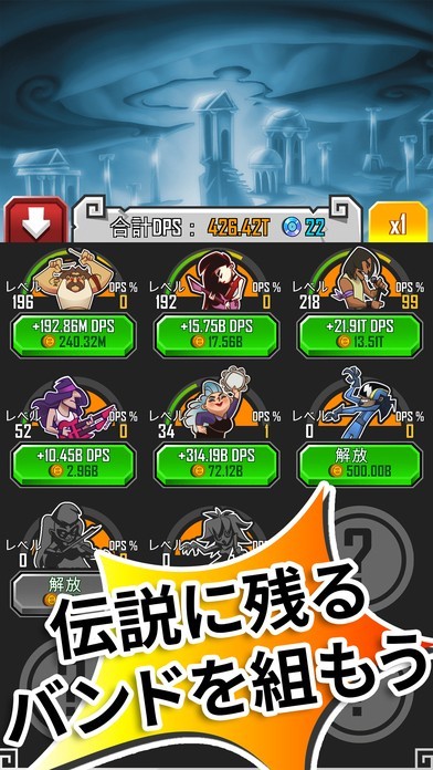 「Rock Gods Tap Tour」は、ロックバンドが音楽の力によってモンスターや神を倒していく放置系クリッカーアプリです。 本作は、画面をタップすることで攻撃を行い、施設のアップデートにより放置時に与える攻撃力を増加させてステージを攻略していくという放置系アプリの楽しみはそのままに、「音楽」により注視したゲームになっています。 クリッカーゲームといえば、放置していても問題ないBGMであるものがほとんどですが、本作はロックなBGMが目白押しになっています! ついついリズムゲームのように音楽に合わせて押したくなるBGMは必聴です。