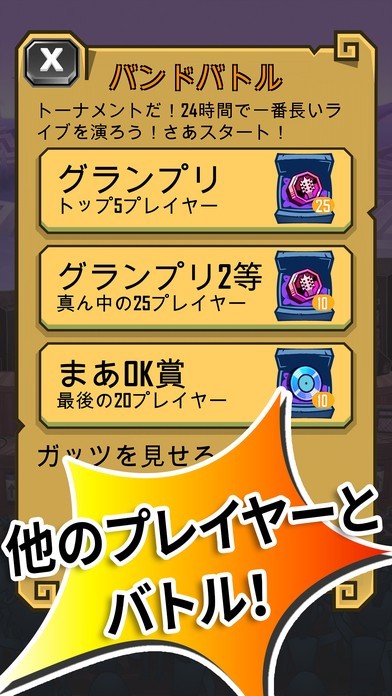 タップのたびに鳴るギターやドラムの効果音が盛り上げる!