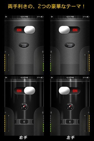 1種類のデザインのみを提供する他のアプリケーションとは異なり、"フラッシュライトLED ®"は早いスピードを保ちながらも2種類のスキンを提供します。