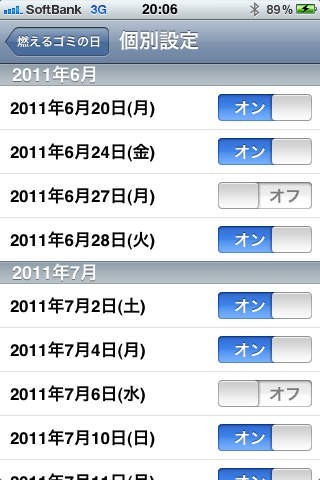 2.個別日付ごとにゴミの日の設定をoffにできる機能