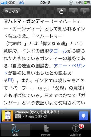 偉人の名前と格言だけではなく、写真やウィキペディアの情報をあわせて読むことができるため、偉人の人物像や格言の生まれた背景、さらには歴史的背景を知ることができます。