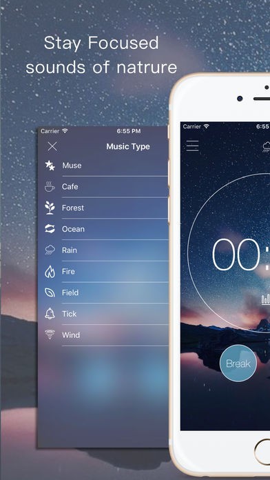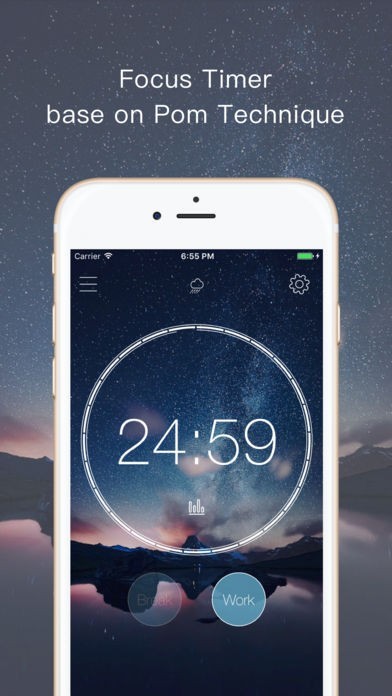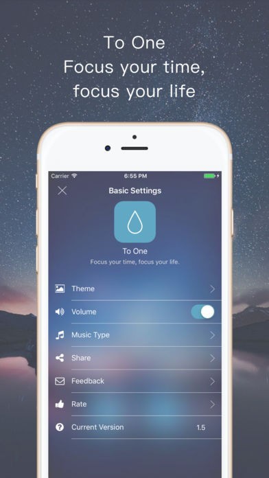 App Storeより引用ToOne - こちらは簡潔で、カスタマイズできて、BGM (White noise)を流すことができます、クラウドストレージも統計データもあって、社交的な属性を持っているトマト時計です。