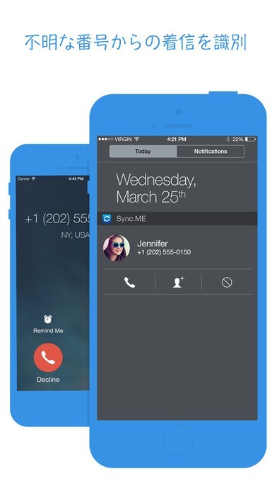 スマートフォンにかかってくる見知らぬ電話番号からの着信が誰からのものなのか、確認可能になるのが「Sync.ME」になります。世界中の10億件以上のデータベースの中から着信した電話番号を自動的に検索してくれるので、勧誘業者やスパム業者からの着信もすぐに確認することができるようになっているので安心して電話に出ることができます。また自分のTwitterやFacebook、アドレス帳などに登録されている友人からの着信の際には、データを自動的に検索して相手の写真を着信画面に表示してくれたり、重複している連絡先データの結合機能なども搭載しています。