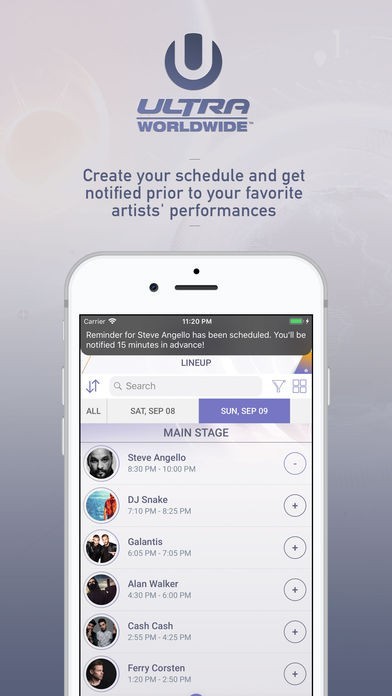 「Ultra Worldwide」は、Ultra Musicをより楽しむことができるようサポートしてくれるアプリです。イベントごとにカスタマイズできる他、好きなアーティストを設定することで、自分だけのスケジュール帳を作成できます。