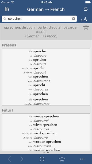 Ultralingua makes apps for people who love languages. You can count on our French-German dictionary to provide all the content you need, along with extra features that help you get the most out of the dictionary. Use our verb conjugation tool to find complete conjugations of thousands of verbs in all standard forms, and the number translator to convert numerals into French or German text instantly.