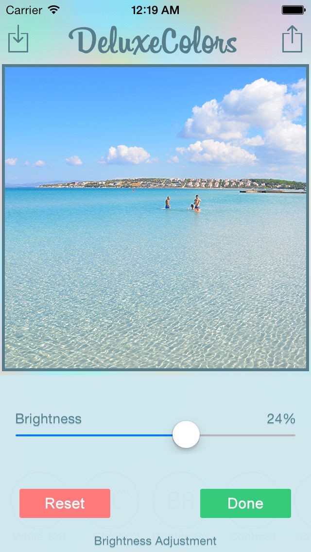 36種類のフィルターに加え、ホワイトバランス、明るさ、コントラストなどを全画面自由に、しかも簡単に編集することが可能です。また、スクエアサイズへのリサイズもできるのでSNSへの投稿もラクラクです。