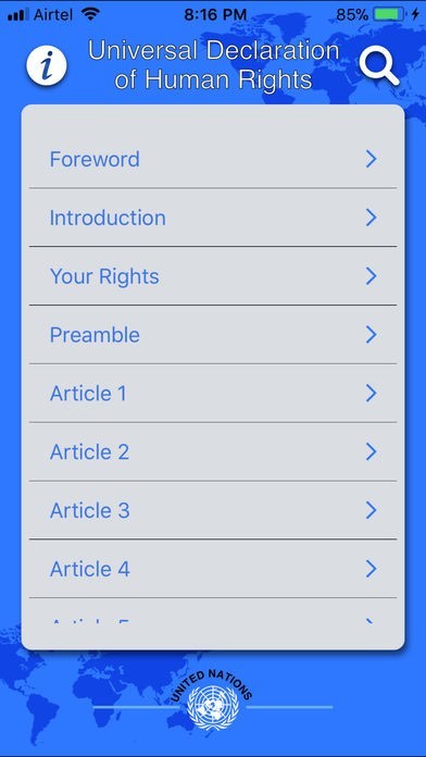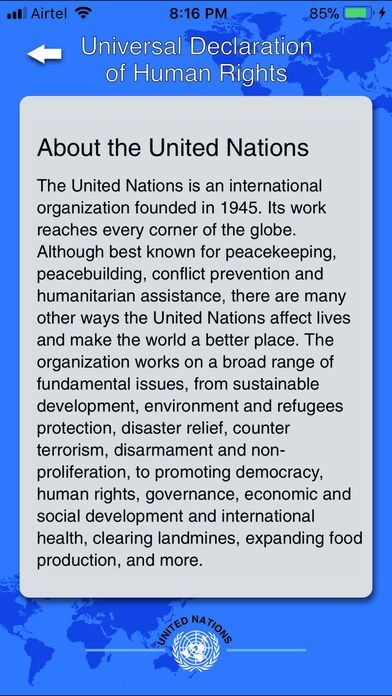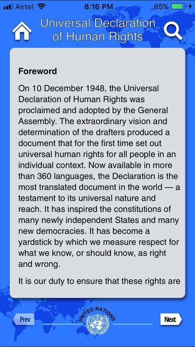 App Storeより引用Here you will find the text of the Universal Declaration of Human Rights, a milestone document in the history of human rights, drafted by representatives with different legal and cultural backgrounds from all regions of the world. The Declaration was proclaimed by the United Nations General Assembly in Paris on 10 December 1948 as a common standard of achievements for all peoples and all nations. It sets out fundamental human rights to be universally protected and has been translated into more than 500 languages.