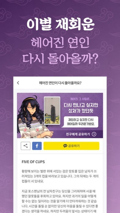 썸, 짝사랑, 이별, 재회운 등 당신만의 고민을 들어 드려요.