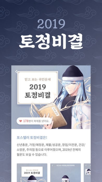 사주 신년운세, 토정비결 등 2019년 운세를 비롯하여 다양한 운세가 계속 업데이트 됩니다.