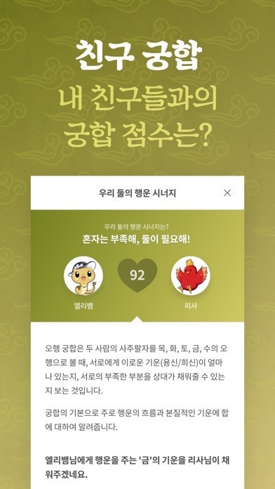 내 친구들과 나와의 궁합 점수는 몇 점?! 지금 바로 친구 맺고 확인하세요.