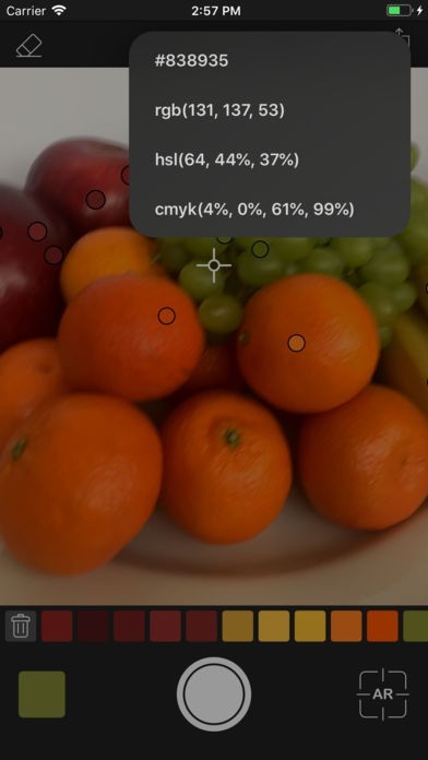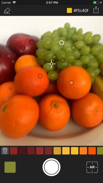 App Storeより引用Collect colors from real world with unbeatable argumented reality experience. See picked colors as spots around yourself and find already picked color easily.