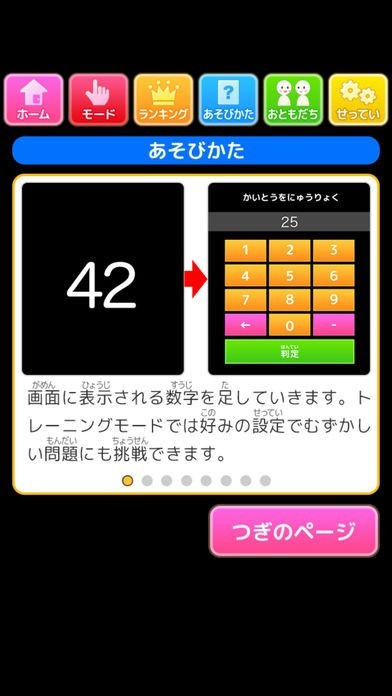 App Storeより引用画面に次々と表示される数字を足して合計を答えるフラッシュ暗算アプリです。