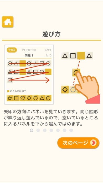 正解となる図形をスライドさせて空欄に当てはめて行くだけだから難しい操作が必要無く並び方の規則性がわかればすぐに答えることができるのでタイムアタックをしている時も無駄な時間をかけずに答えられます。
