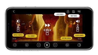 *swipe controls for brightness - or +, volume - or +, forward>>||<< backward.