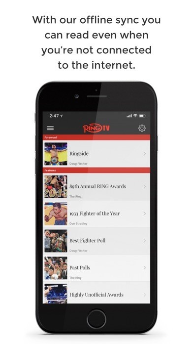 App Storeより引用Experience The Ring magazine on your mobile device! For over 90 years, The Ring has provided unparalleled boxing coverage, insight and analysis from today’s top journalists. Exclusive features, hard hitting articles and dramatically images that chronicle every move in the boxing industry make The Ring a must read for boxing fans.
