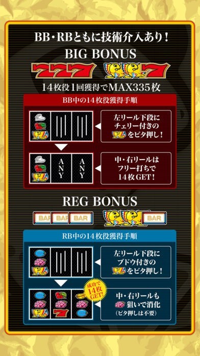 本アプリケーションで登場するスロットは実在するスロットをモチーフに再現されているので、非常にリアルなギャンブル感覚を体感することができるような仕様となっています。