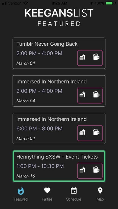 App Storeより引用KeegansList is your top source for RSVPs in Austin during the month of March when it gets super crazy. This app will allow you to get instant notifications when new parties are posted, provide you with a daily schedule, and map out all of the parties around your location. We also have a group chat feature so you can talk with other people going to a party!