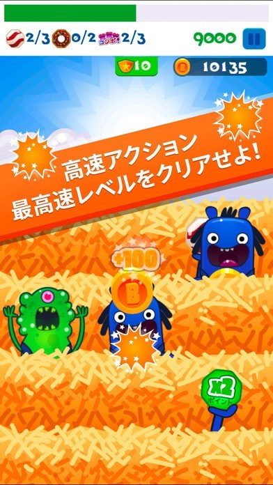 「もぐらたたき風タップゲーム「ミービッツ」」は、誰しも一度はプレイしたことがあるもぐらたたきの要素が入っているアプリです。キャラクターであるミービッツ君から、コイン・お菓子を取り上げていきます。操作はタップするだけなので、お子様でも楽しめます。コインを集めると強化アイテムを取得できたり、難易度が高くなるステージへ挑戦できるのでどんどん貯めていく必要があります。画面上部にスコアは表示されるので、友人同士でスコアを競い合って楽しむのもいいです。