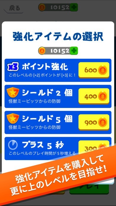手早く叩くことが大切!コインを集めると強化アイテムが獲得できる!