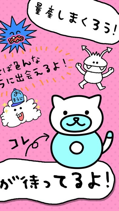 「ニャーO型」をたくさん生産していくゆるいゲームを楽しむことができる