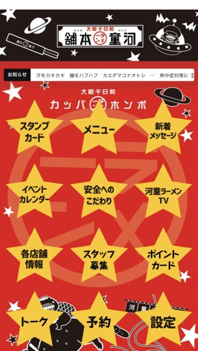 大阪や奈良など近畿地方を中心に展開するとんこつ醤油ラーメン店「河童ラーメン本舗」の公式アプリです。メニューや各店舗の情報が閲覧できますので、まだ利用したことがない、または回数が少ないビギナーさんでも活用できます。イベントといった旬の情報はもちろんのこと、店舗で実際に使えるクーポンとスタンプサービスを提供し、普段の利用がさらにお得になる点も特徴です。