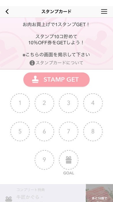 ご利用の際にアプリをご提示ください。アプリ内にスタンプが貯められます。