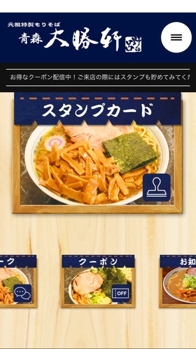 人気ラーメン店「青森大勝軒」の公式アプリ