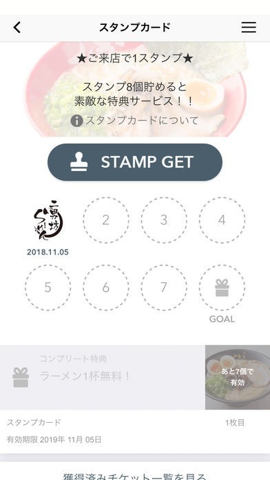お店をご利用の際にアプリをご提示ください。アプリ内にスタンプが貯められます。