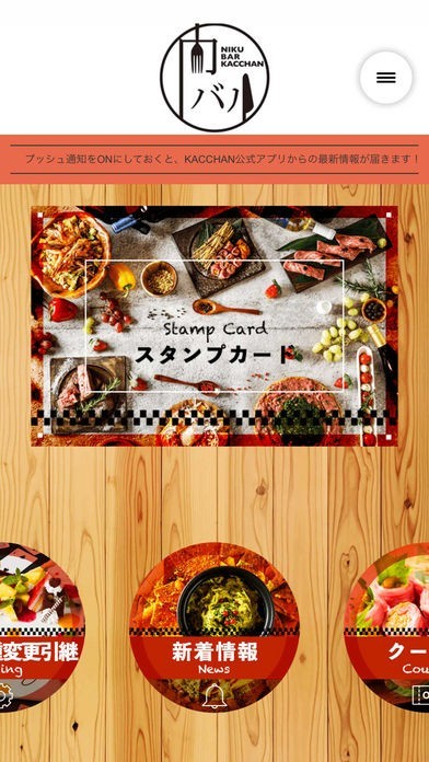 ・【肉バル KACCHAN】からの最新情報をプッシュ通知で受け取れます。